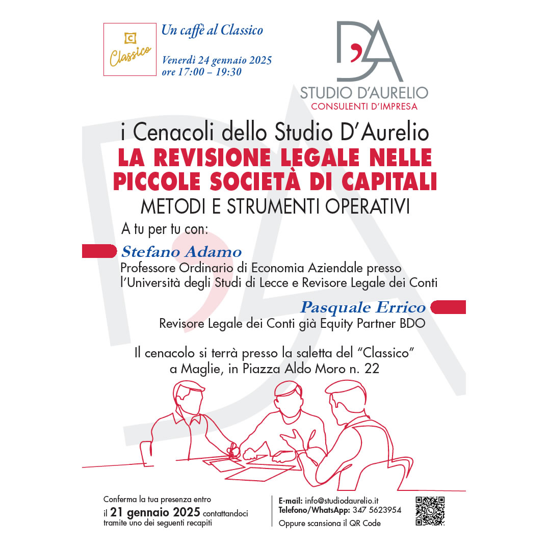 Siamo felici di invitarvi al primo incontro del 2025 dell'iniziativa: “i Cenacoli dello Studio D’Aurelio”